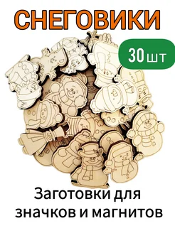 Заготовки из дерева для значков и магнитов Снеговики 30шт