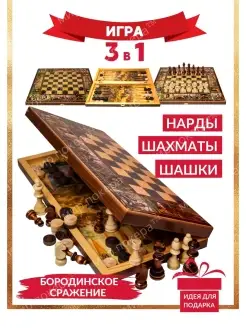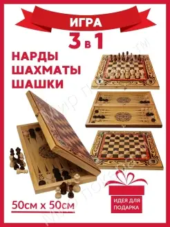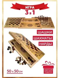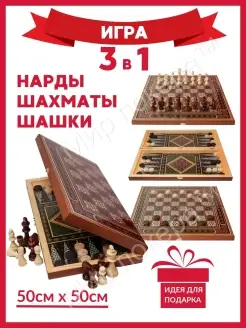 Шахматы 3 в 1 деревянные подарочные 50 см