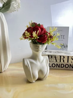 Искусственные цветы в гипсовом кашпо