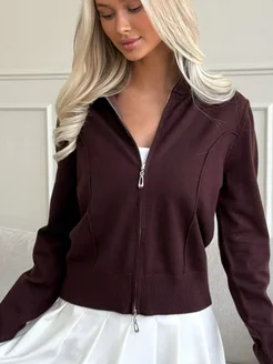 Кардиган на молнии укороченный теплый джемпер