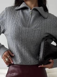 Свитер оверсайз на молнии косичка