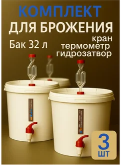 Емкость для брожения с гидрозатвором 32 литра, 3 шт