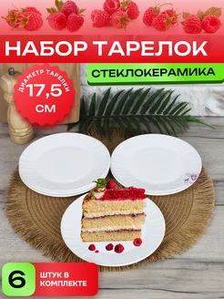 Тарелки плоские десертные 6 шт 17,5 см стеклокерамика
