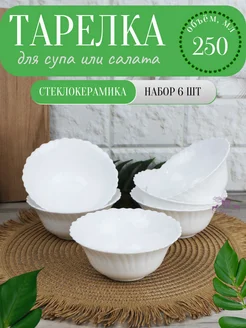 Тарелка глубокая из стеклокерамики 250 мл набор 6 шт