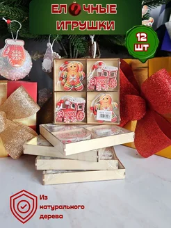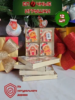 Новогодние елочные игрушки из дерева интерьерные украшения