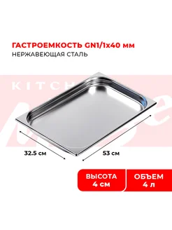 Гастроемкость из нержавеющей стали для духовки GN1 1x40мм