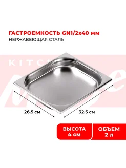 Гастроемкость из нержавеющей стали для духовки GN1 2x40мм