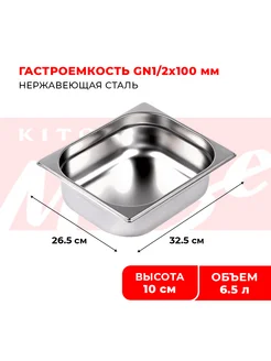 Гастроемкость из нержавеющей стали для духовки GN1 1x100мм