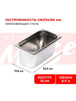 Гастроемкость из нержавеющей стали для духовки GN1 3x150мм