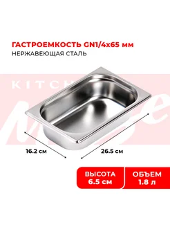 Гастроемкость из нержавеющей стали для духовки GN1 4x65мм