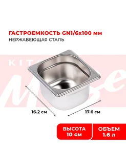 Гастроемкость из нержавеющей стали для духовки GN1 6x100мм