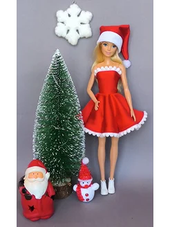 Новогоднее платье и шапка для куклы Барби barbie