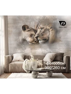 Фотообои на стену "Лев и львица в стиле гранж" 300х260 см