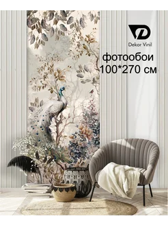 Бесшовные фотообои "Пара павлинов" 100х270 см