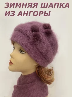 шапка зимняя вязаная с ангорой