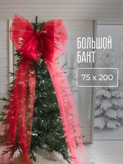 Большой бордовый бант на елку из фатина новогоднее украшение