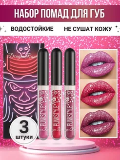 Тинт для губ набор 3 штуки красный, розовый, бордовый