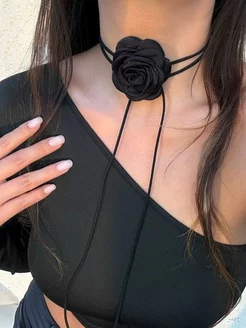 Чокер черный роза, бижутерия цветок на шею, украшение