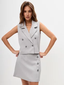 Костюм классический двойка с короткой юбкой и жилетом