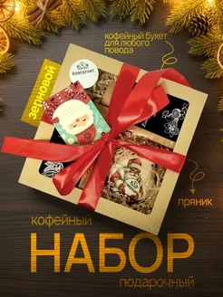 Подарочный набор кофе в зернах с пряником с Новым годом