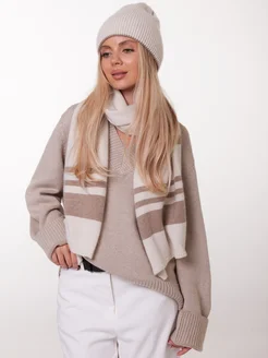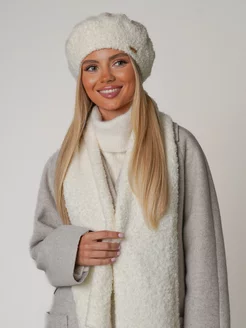 Берет вязанный комплект с шарфом косынкой шерсть ангора
