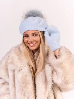 Комплект берет вязанный с шарфом косынкой шерсть ангора