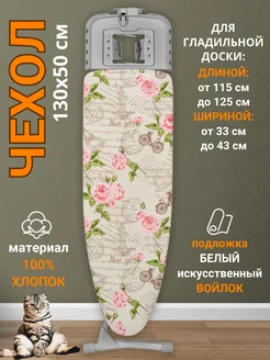Термостойкий чехол для гладильной доски с подкладкой 130х50