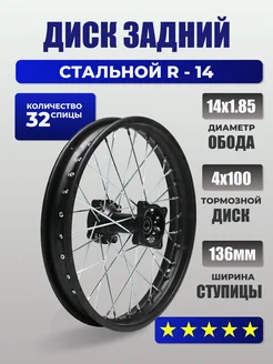 Диск 14" задний сталь для китайских питбайков