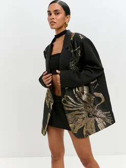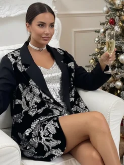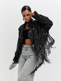 Пиджак удлиненный оверсайз с бахромой и пайетками
