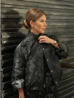 Пиджак бомбер из жаккарда оверсайз укороченный