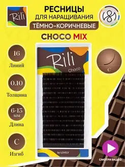 Тёмно коричневые ресницы для наращивания микс C 0.10 6-13мм