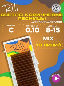 Светло коричневые ресницы для наращивания микс C 0.10 8-15мм