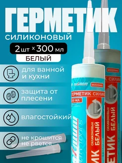Герметик силиконовый санитарный для ванной белый 2шт 600мл