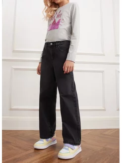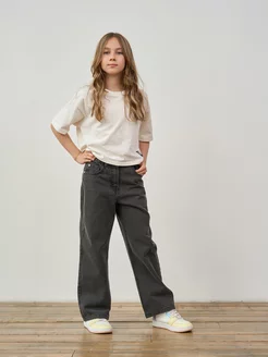 Джинсы для девочки широкие трубы. Цвет светло-серый