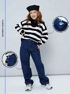 Джинсы для девочки широкие трубы. Цвет темно-синий