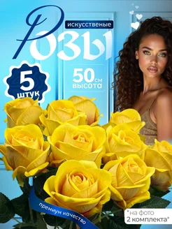Искусственные цветы розы, желтые- 5 шт. 50 см