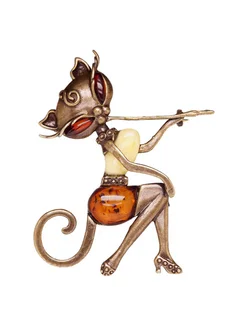 Брошь - подвеска "Кошечка гламурная" янтарь 109