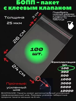 Упаковочные Бопп пакеты с клеевым клапаном 24 х 26 см 100 шт