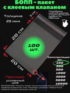 Упаковочные Бопп пакеты с клеевым клапаном 20 х 28 см 100 шт