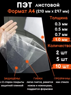 Прозрачный листовой пластик для творчества Пэт А4 1 мм