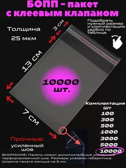 Упаковочные БОПП пакеты с клеевым клапаном 7х13 см 10000 шт