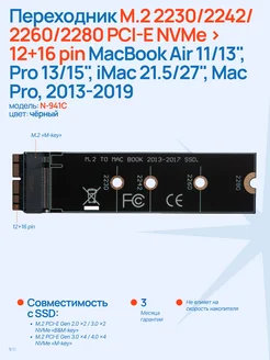 Переходник SSD M.2 PCI-E NVMe > 12+16 pin MacBook iMac Mac