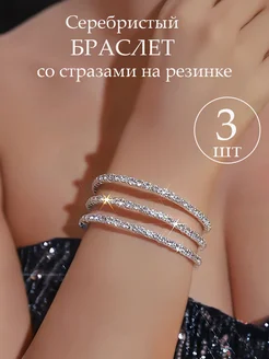 Браслет женский на руку со стразами на резинке. Набор 3 шт