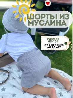 Шорты из муслина летние для мальчиков и девочек новрожденных