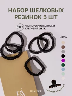 Резинка для волос из 100% натурального шёлка, комплект 5 шт