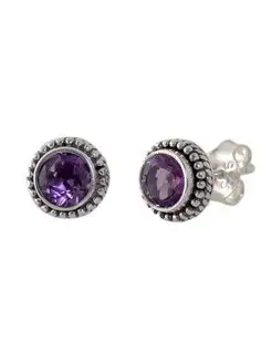 Серьги-пусеты из серебра 925 пробы с натуральным аметистом