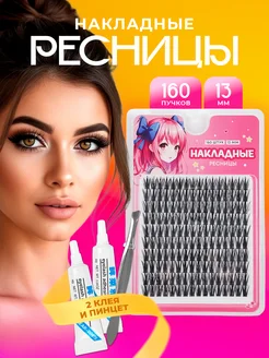 Накладные ресницы пучки 13 мм с клеем и пинцетом