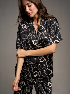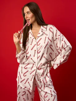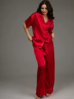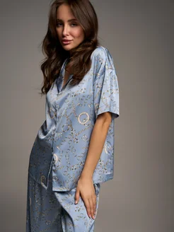 Пижама со штанами и рубашкой шелковая, домашний комплект