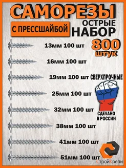 Саморезы с прессшайбой острые цинк набор 800 шт