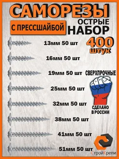 Саморезы с прессшайбой острые цинк набор 400 шт